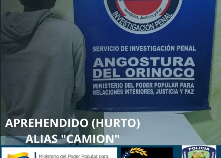 Un individuo conocido como “Camión”, dedicado al hurto en el sector Araguaney de Ciudad Bolívar, fue detenido por las autoridades. El sujeto utilizaba la madrugada para...