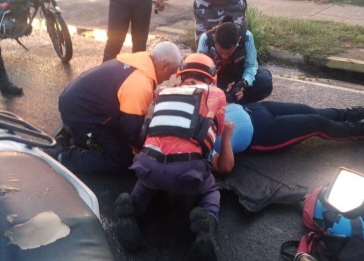 Una mujer sufrió lesiones tras caer de su motocicleta en la avenida Libertador de Ciudad Bolívar, frente al cementerio. El incidente se produjo debido al pavimento...