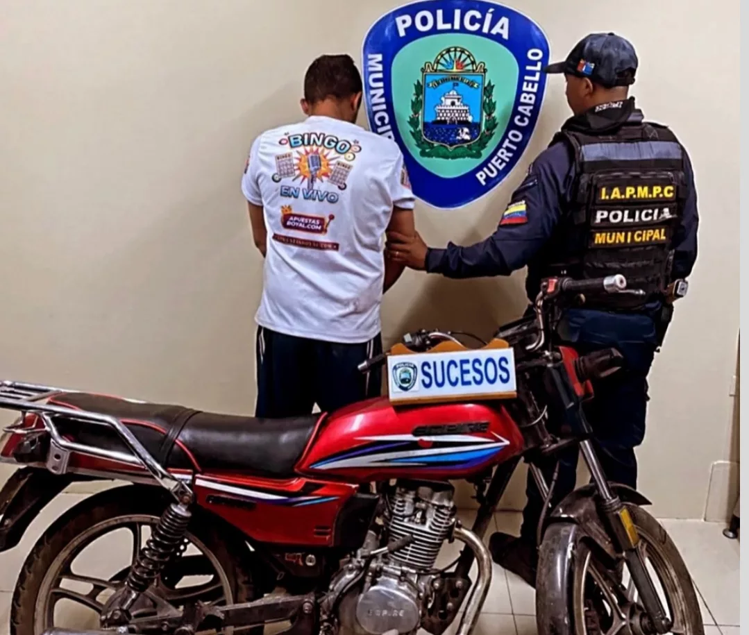La Policía Municipal de Puerto Cabello aprehendió a Gregori Antonio Vásquez Vargas tras ser señalado de amenazar a un ciudadano para robarle su motocicleta en el...