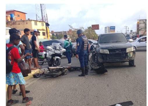 Un motociclista identificado como José Colina sufrió politraumatismos y múltiples escoriaciones al colisionar su vehículo contra una camioneta en la avenida Hugo Chávez de Tucacas, estado...